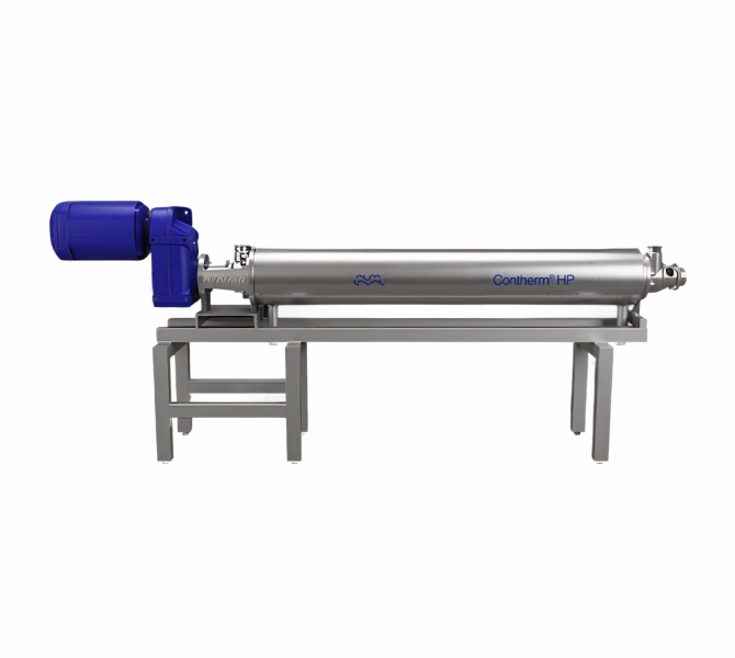 Contherm®, это высокопроизводительный скребковый теплообменник, идеально подходящий для обработки продуктов различной вязкости, в том числе с твердыми частицами размером до 36 мм, в непрерывном и полунепрерывном режиме под высоким давлением.